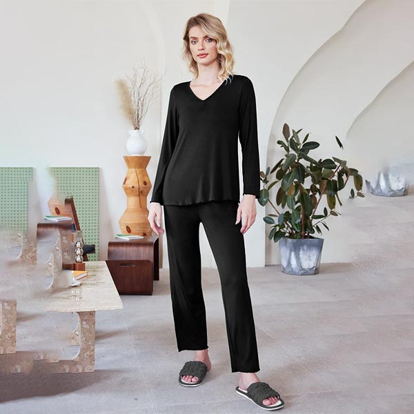 - TOP: The long sleeve pajama tops with v neck & front pleated design, simple but elegant, perfect for house or daily wear on cooling day.