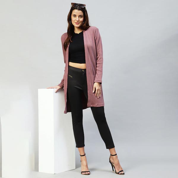 Women Self Design Longline Shrug